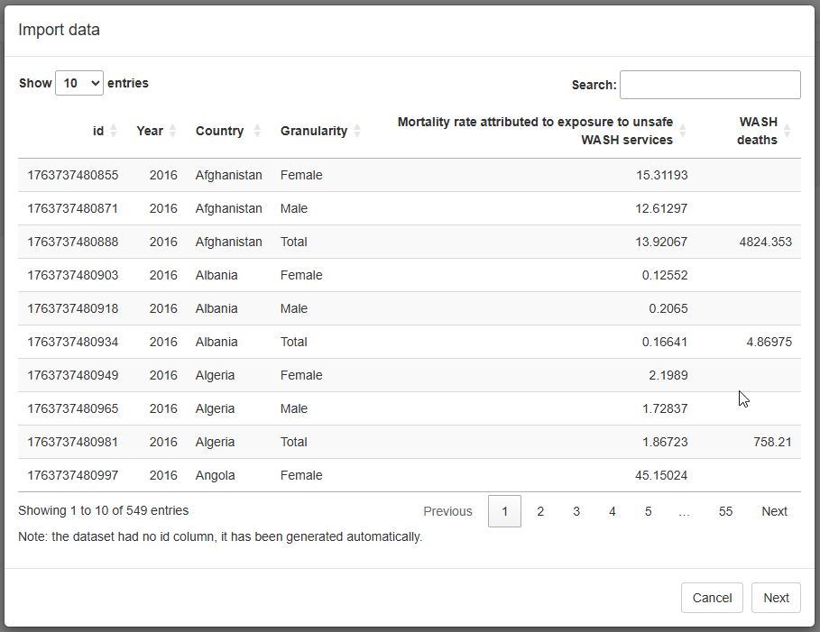 In case the data does not contain anidcolumn, unique ids will be generated but performances are poor when data contains many rows.