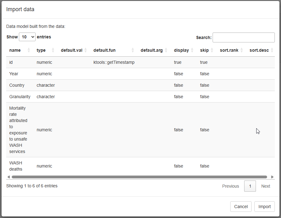 At this stage, the import process is not very flexible as it does not allow to tune the extracted data model, or select specific columns of the data. This needs to be done manually in a second step.