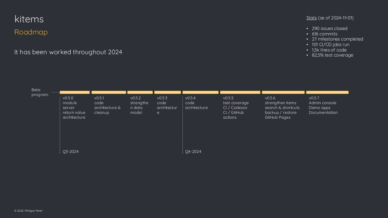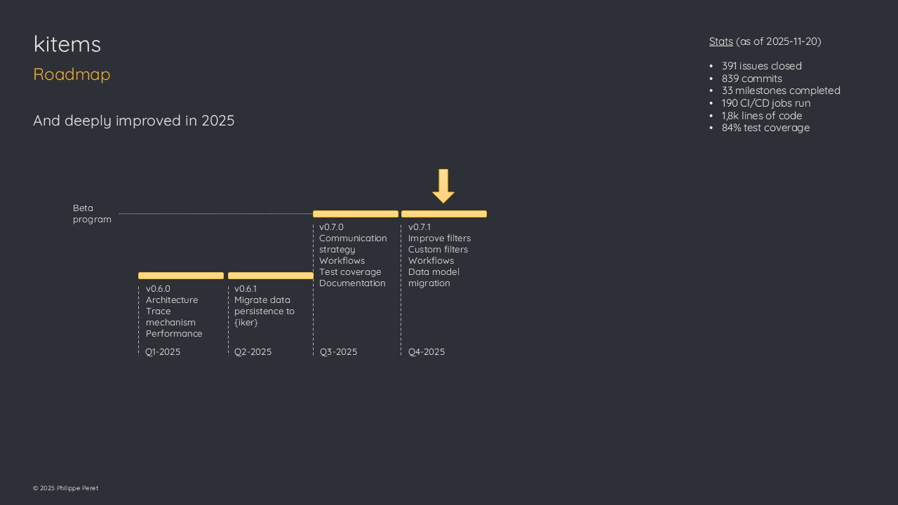 Since 2025, focus has been put on deep work to improve the architecture, communication, workflows & performances. Also long time expected features (like filtering) are delivered.