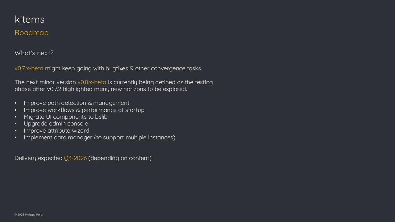 Since mid-2025, focus has been put on deep work to improve the architecture, communication, workflows & performances. Also long time expected features (like filtering) are delivered.